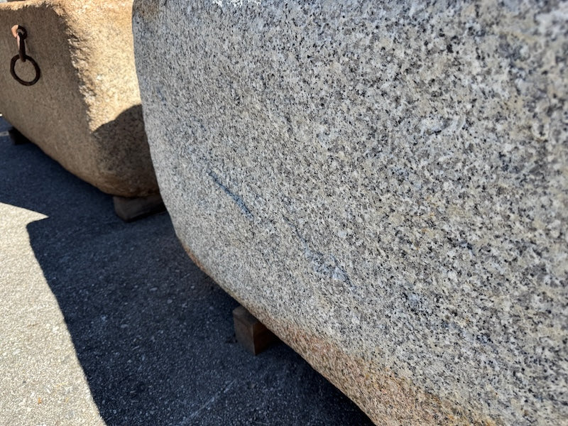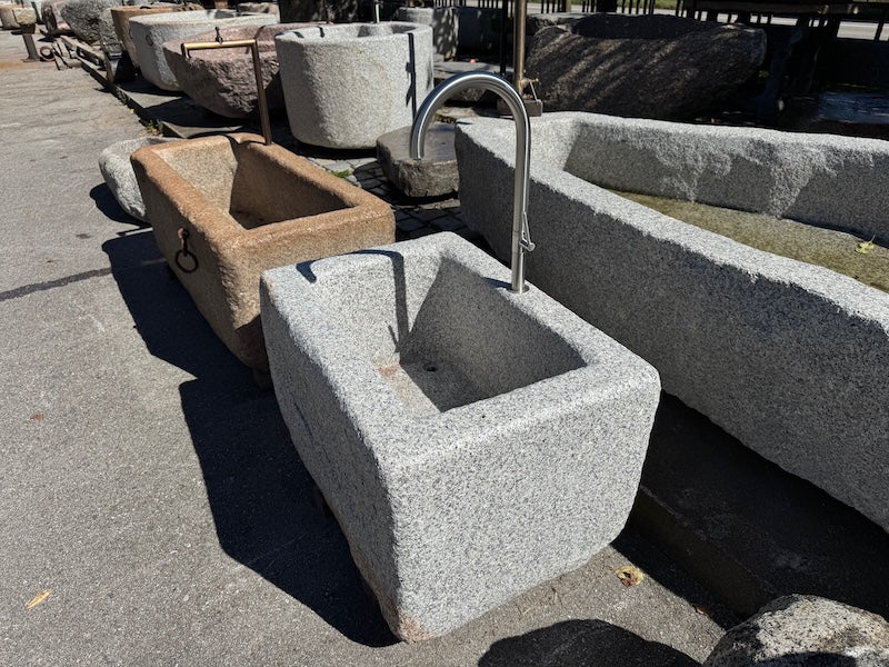 Ein echtes Unikat der Steinbrunnen Outdoor. Im hellen Granit sind gut die naturbelassenen Stellen zu erkennen. Die Form, die Größe, das Gestein und die Farben. Das gibt es nur einmal. Das Gewicht beträgt ca. 450kg. Der sehr hochwertige Edelstahlwassereinlauf wurde in die Seitenwand versenkt. MEGA. Keine Schellen oder kein Rohrsalat. Schaut perfekt aus. Am Edelstahlbolzen kann man das Wasser super regulieren. Anschlussmöglichkeit wäre 3/4 Zoll.