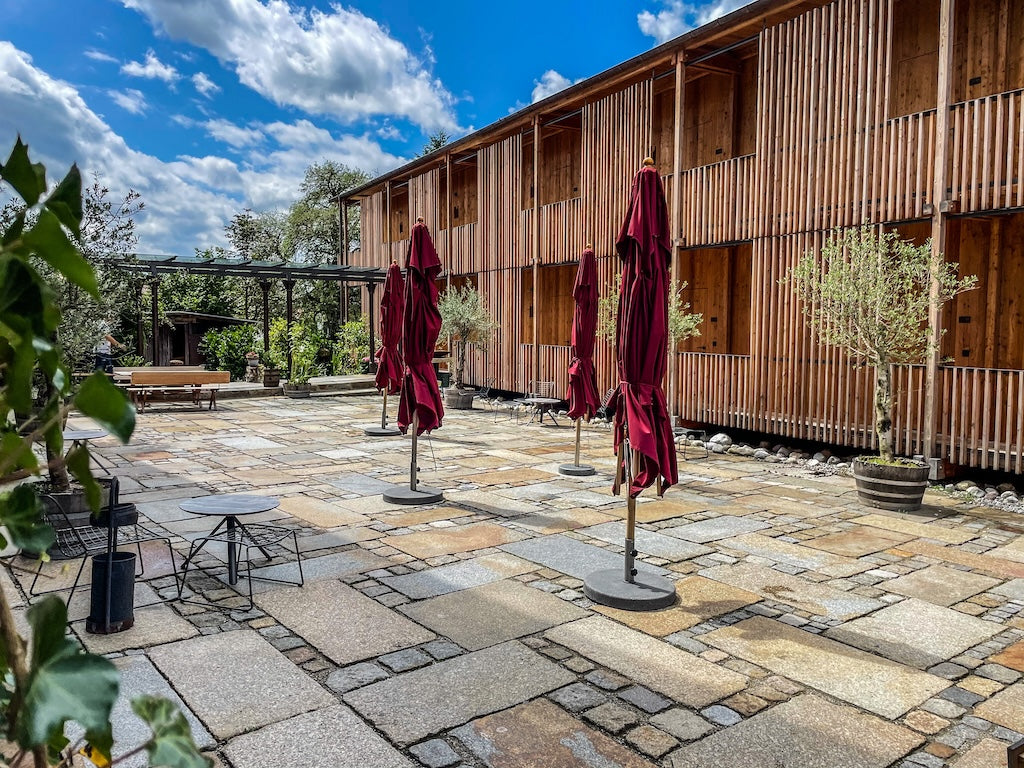 Tolle antikisierte Granitplatten im Innenhof. Wir setzen auf europäische Qualität.