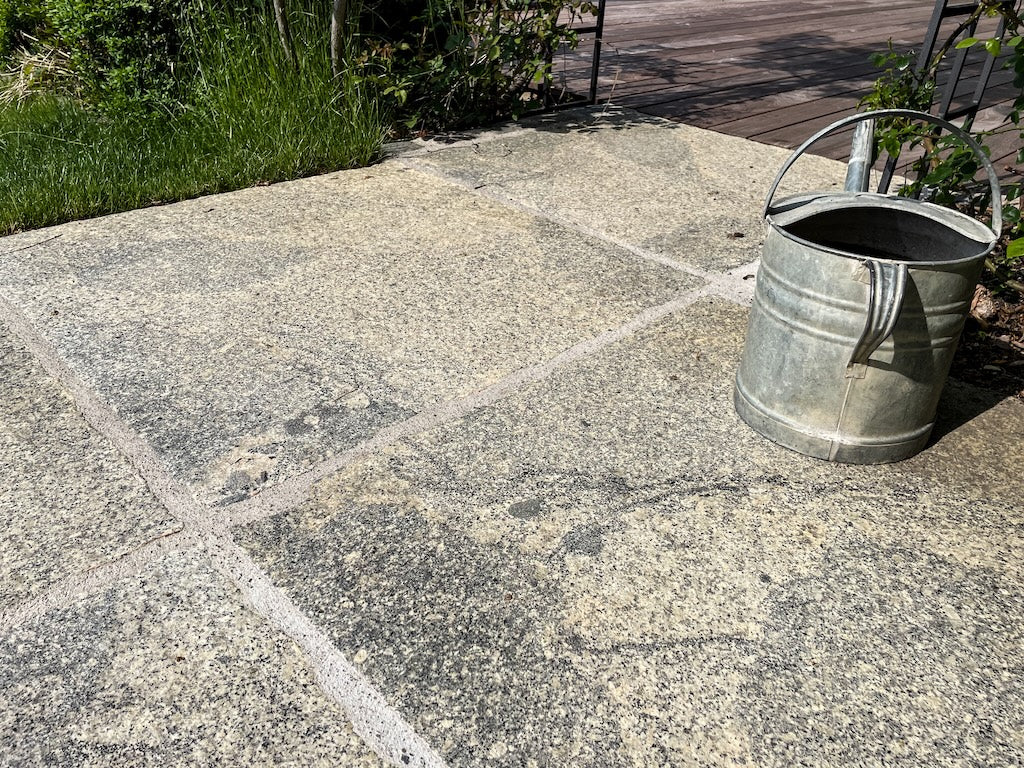 Antikisierte Granitplatten als tolle Alternative zu alten Gredplatten.