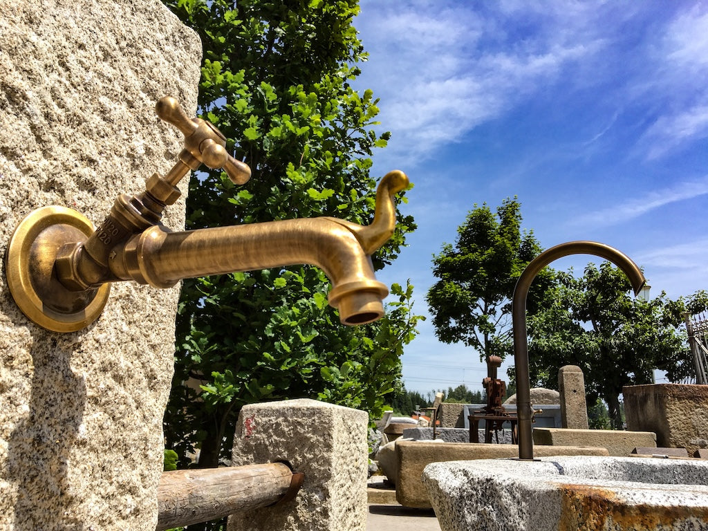 Brünierter Messing Wassereinlauf für den edlen Ton.