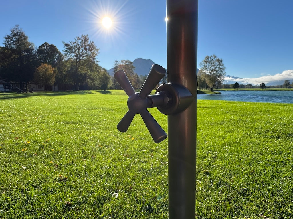 Unsere Messing Wassereinläufe sind auf Wunsch mit einem massiven Handrad ausgestattet, über das sich der Wasserfluss präzise regulieren lässt. Bei Maßanfertigungen bestimmen Sie: