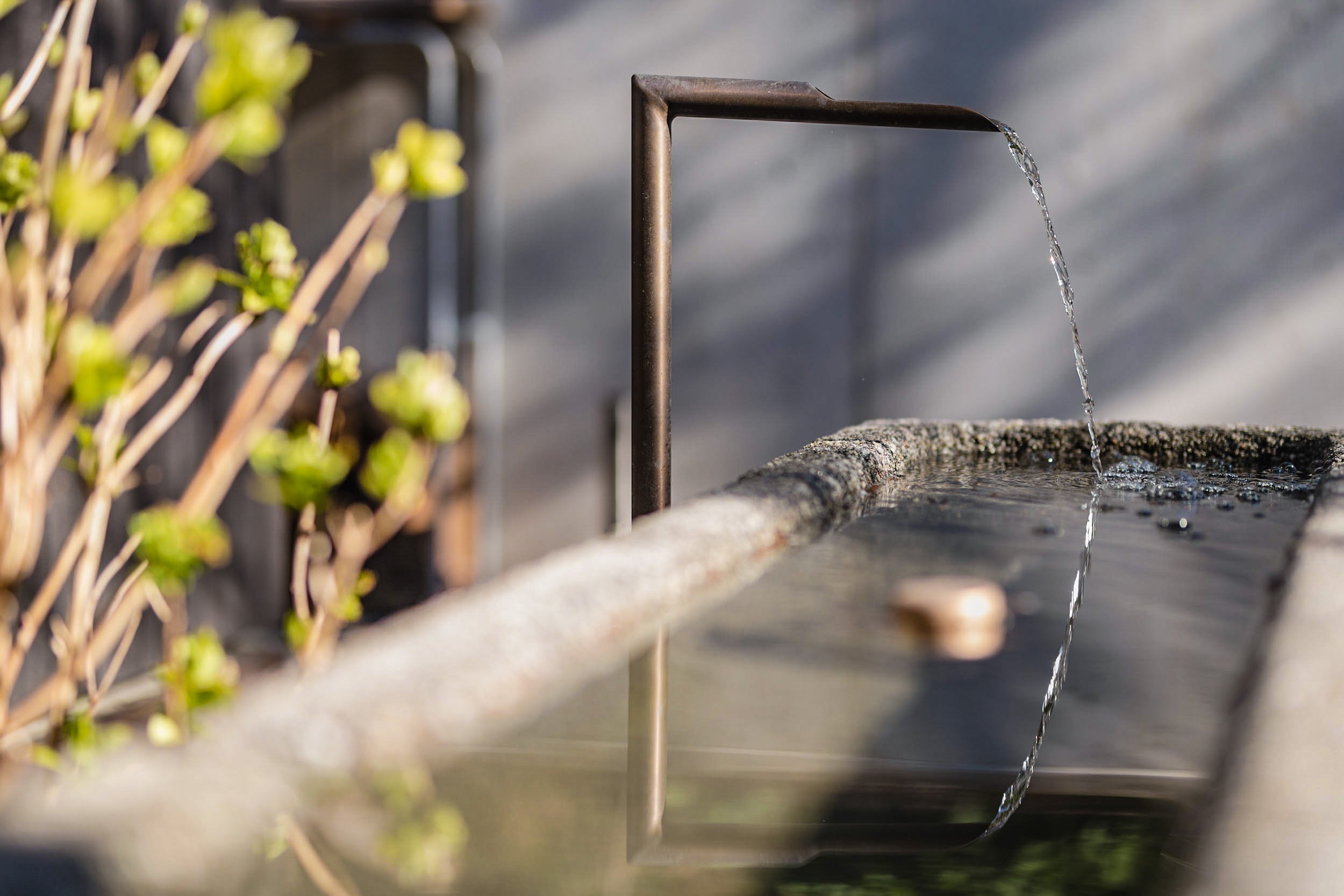 Im Außenbereich dunkelt der Wassereinlauf mit der Zeit zusätzlich nach – ganz natürlich.